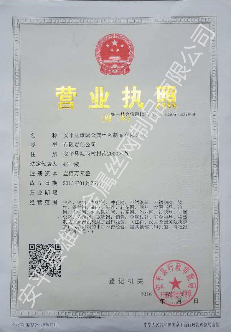 版權所有©安平縣雄闊金屬絲網制品有限公司 地址:安平縣院西工業區